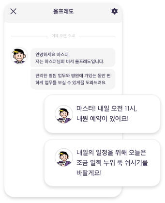 내원부터 상담 이력까지, 올프레도가 모든 예약을 정리하고, 관리해드립니다.