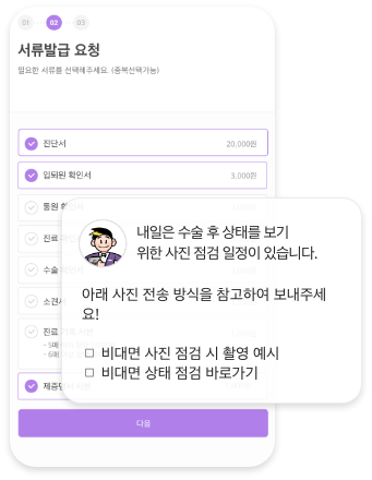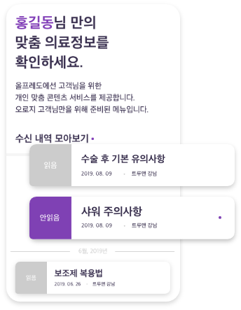 수술 전 안내사항 부터 수술 후 주의사항 까지, 순차적으로 관리해드립니다.