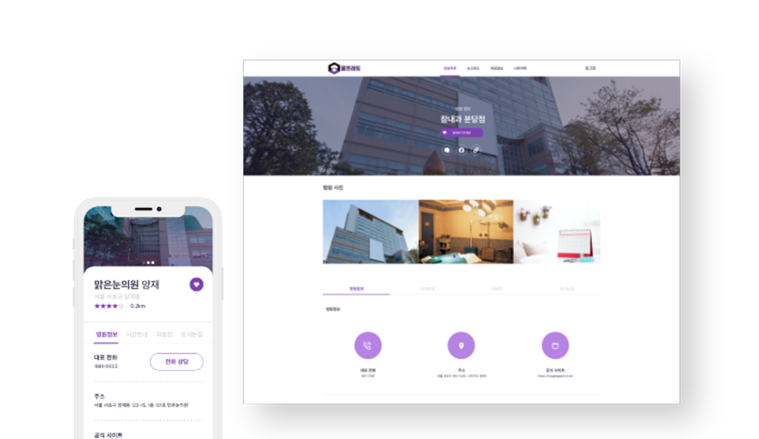 견고한 구조의 육각형을 기본으로, 안정감을 가져다 주는 보라색과 비서의 의상을 조합하여 올프레도 만의 심볼을 제작하였습니다. 이는 고객과 올프레도 간의 견고한 신뢰관계를 쌓아올리는 의미이자, 병원과의 심리적 장벽을 허물기 위해 탄생한 심볼입니다.